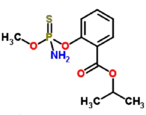 水胺硫磷(Isocarbophos)是一種有機(jī)磷殺蟲(chóng)劑,分子式為C11H16NO4PS。水胺硫磷純品為無(wú)色鱗片狀結(jié)晶,能溶于乙醚、苯、丙酮和乙酸乙酯,不溶于水,難溶于石油醚,工業(yè)品為茶褐色粘稠的油狀液,放置過(guò)程中不斷析出結(jié)晶,有效成份含量85-90%, 常溫下貯存穩(wěn)定。